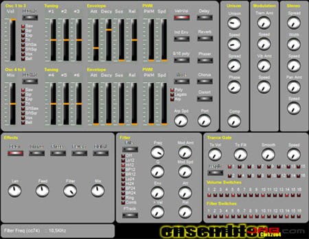 Ensembler simulates a string synth unit by using 6 detuned oscillators.