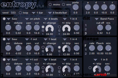 entropy is a 3 osc subtractive synth with a set of pitch randomising options to generate melodies all on it__Ç?±_ own.