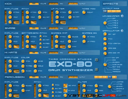 EXD-80 is a flexible drum synth that can produce a wide variety of drum and percussion sounds.