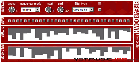 It allows you to select the type of filter, cutoff and resonance for each step, as well as start, end, and sequencer modes for a wide variety of effects. breakdown can be hand set to create wah wah, gate, and wobble effects, or use the patch randomizer for some intense audio mangling.