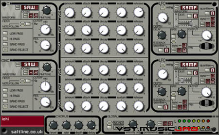 Scarica questo Analog / subtractive synth instrument rilasciato da Saltline.