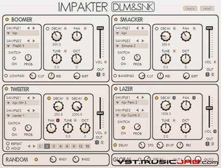Impakter is a vintage drum module plugin containing over 300 samples of original drum sounds generated on analogue synths and drum machines.