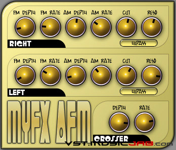 MYFX AFM is an FM (Frequency Modulation) and AM (Amplitude Modulation) effect plugin with 2 filters (switchable LP/HP/BP) and a ?_???_crosser?__??.