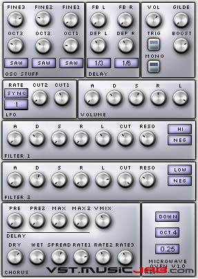 Microwave Oven [scheda], 3 osc arpeggiator synth instrument sviluppato da Odosynths.