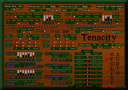 Tenacity [scheda], monophonic synth instrument rilasciato da Opulent Audio.