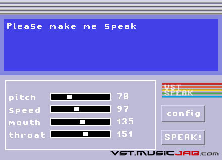 VST Speek is a speech software synthesizer: it reads the text you type in the text field.