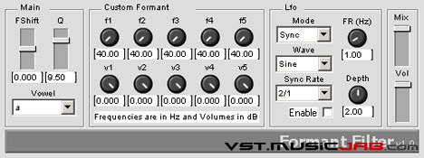 Formant filter is an effect that uses a bank of 5 band pass filters.
