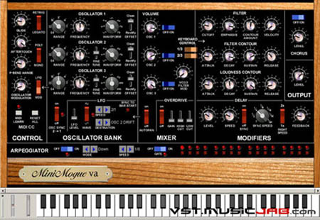 MiniMogueVA is based on the popular analog Minimoog monosynth.