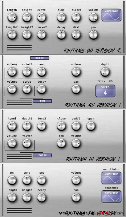 This pack contains 4 rhythms synths