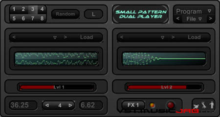 SpDp is a Small Pattern Dual Player with random sample load and 8 Lock n recall pattern memory slots, plus a boost/stereo widener effect.