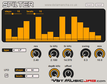 sfilter è un step filter sequencer sviluppato da de la Mancha.