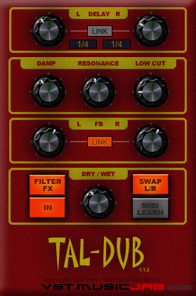 TAL-Dub è un vintage delay (32 – 64 bit), per Windows e Mac, messo a disposizione da Togu Audio Line. Effetto VST e Audio Unit.