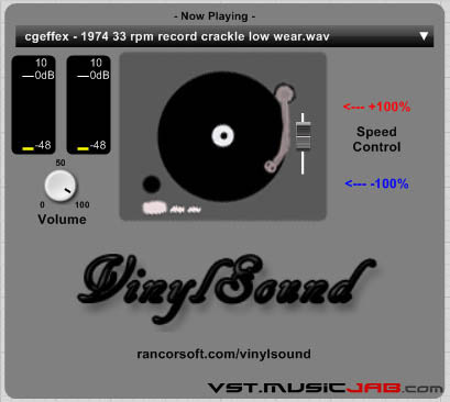 VinylSound is a VST instrument pre-loaded with 13 sound loops of real vinyl record pops and clicks.