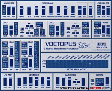 Voctopus [scheda], 8 band vocoder / synth instrument sviluppato da boxsounds.